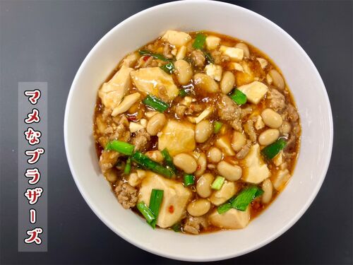 ボクの定番、麻婆豆腐を作りました。 誰のレシピだったか忘れましたが、いつも同じです。 おやおや?なんだか変わったマーボーちゃんですね。 いつもの食材に、大豆をプラスワンしました。 どうしてって、何となく大豆気分だったので。 さらにマメを重ねる。…