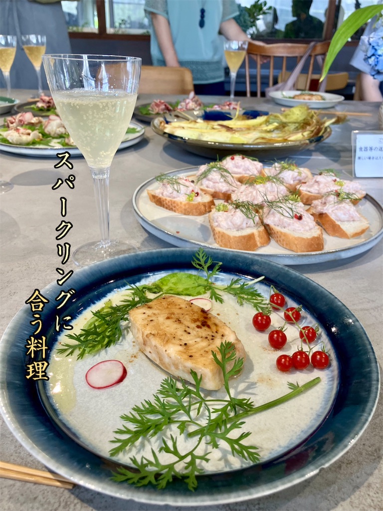 今回は、スパークリングを用意してもらい、それに合う料理を作りました。